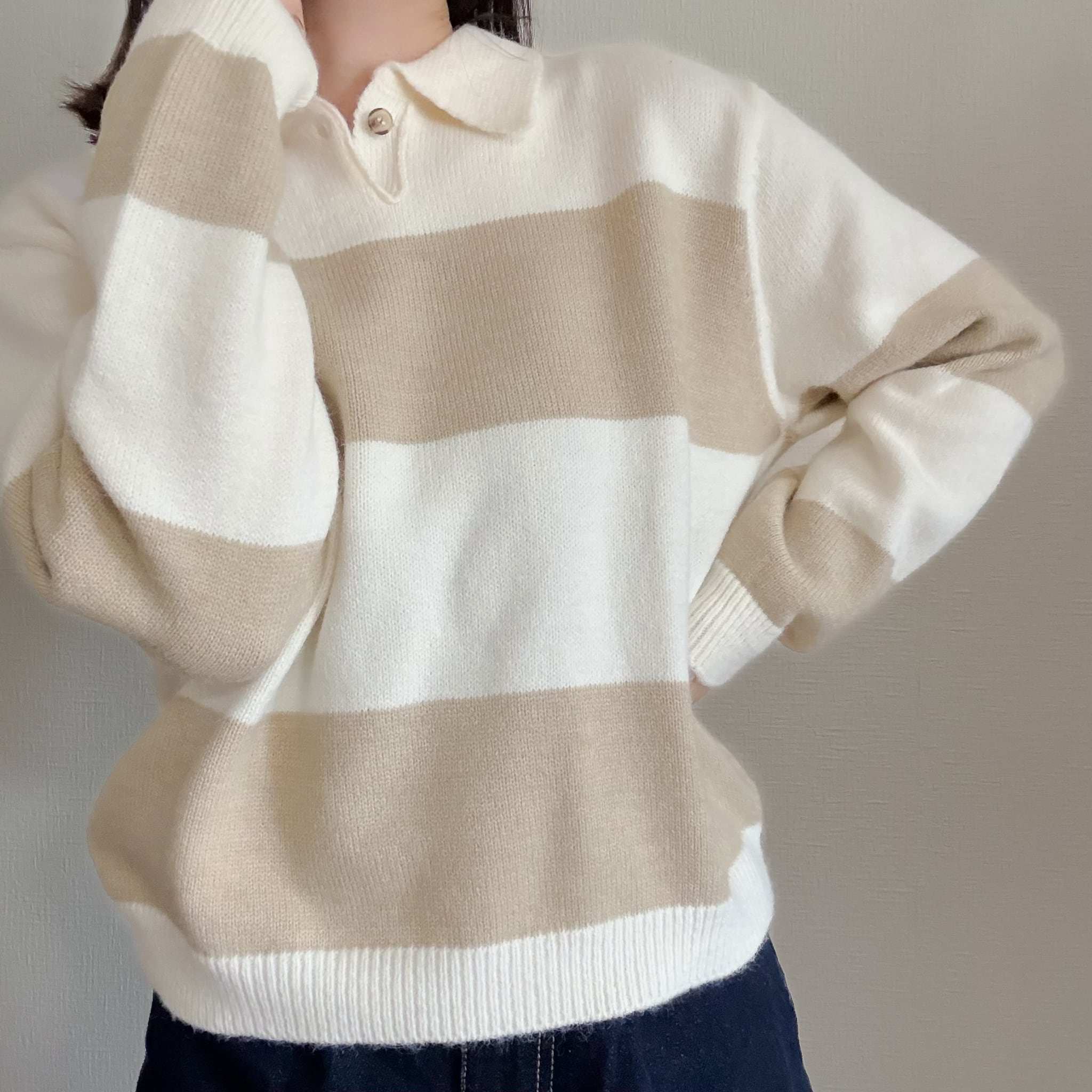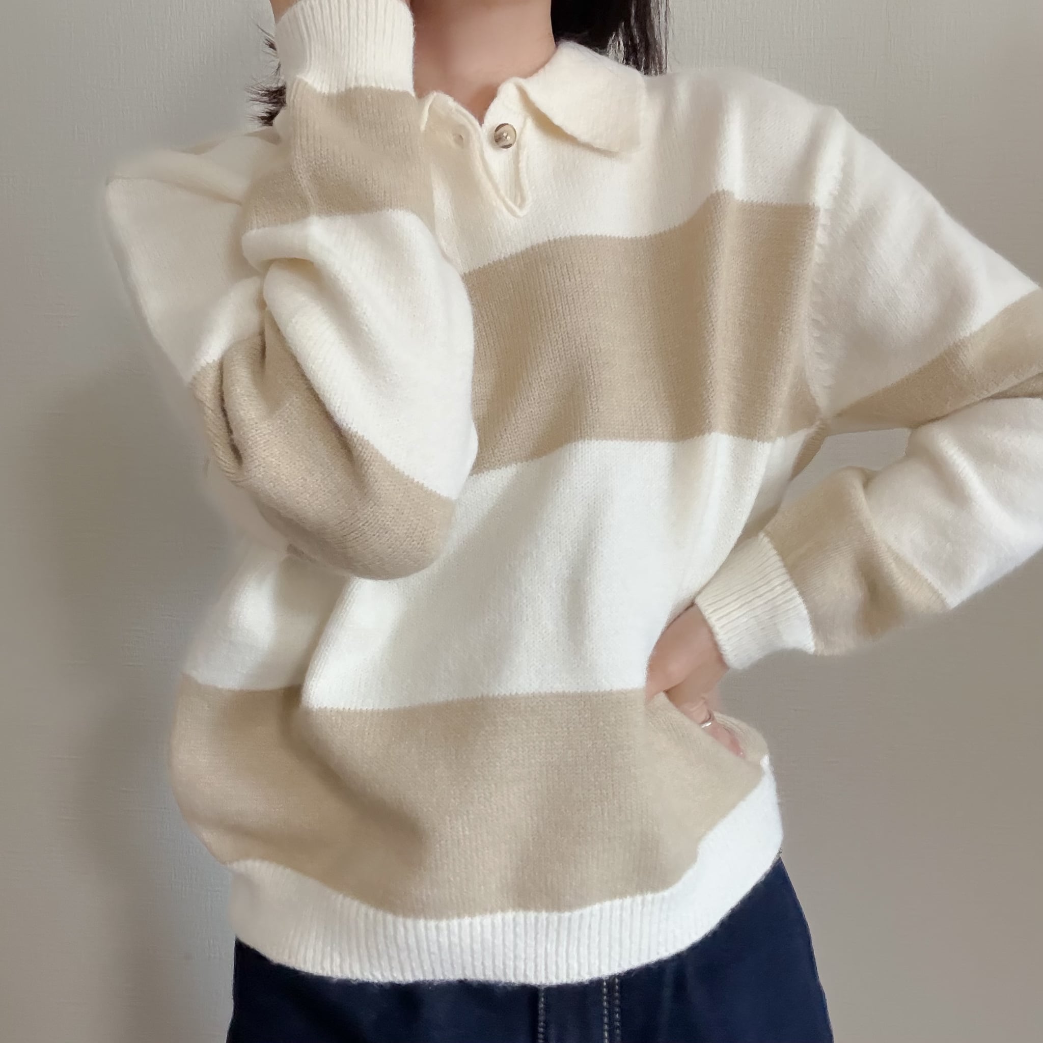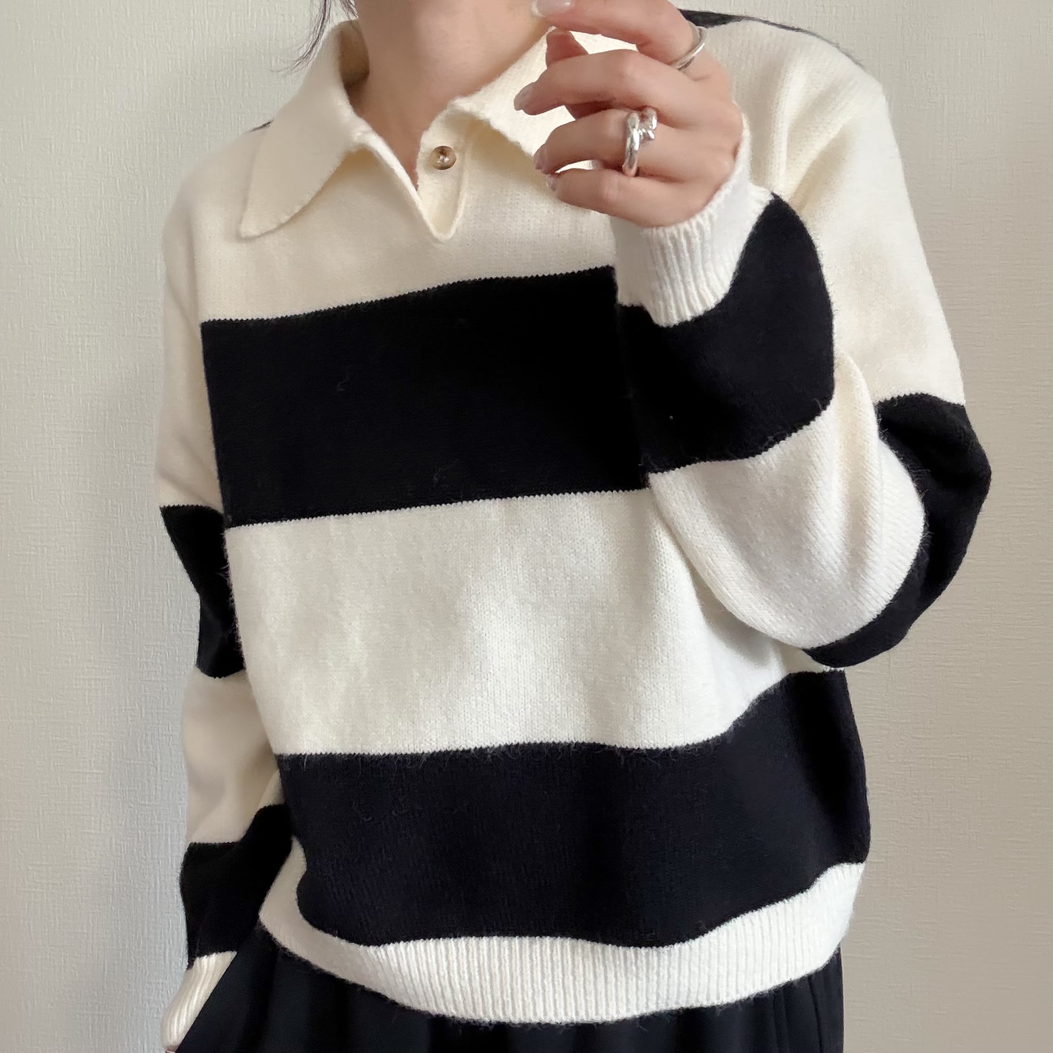 さりげない襟デザインが、大人の装いに上品なトレンド感をプラス。