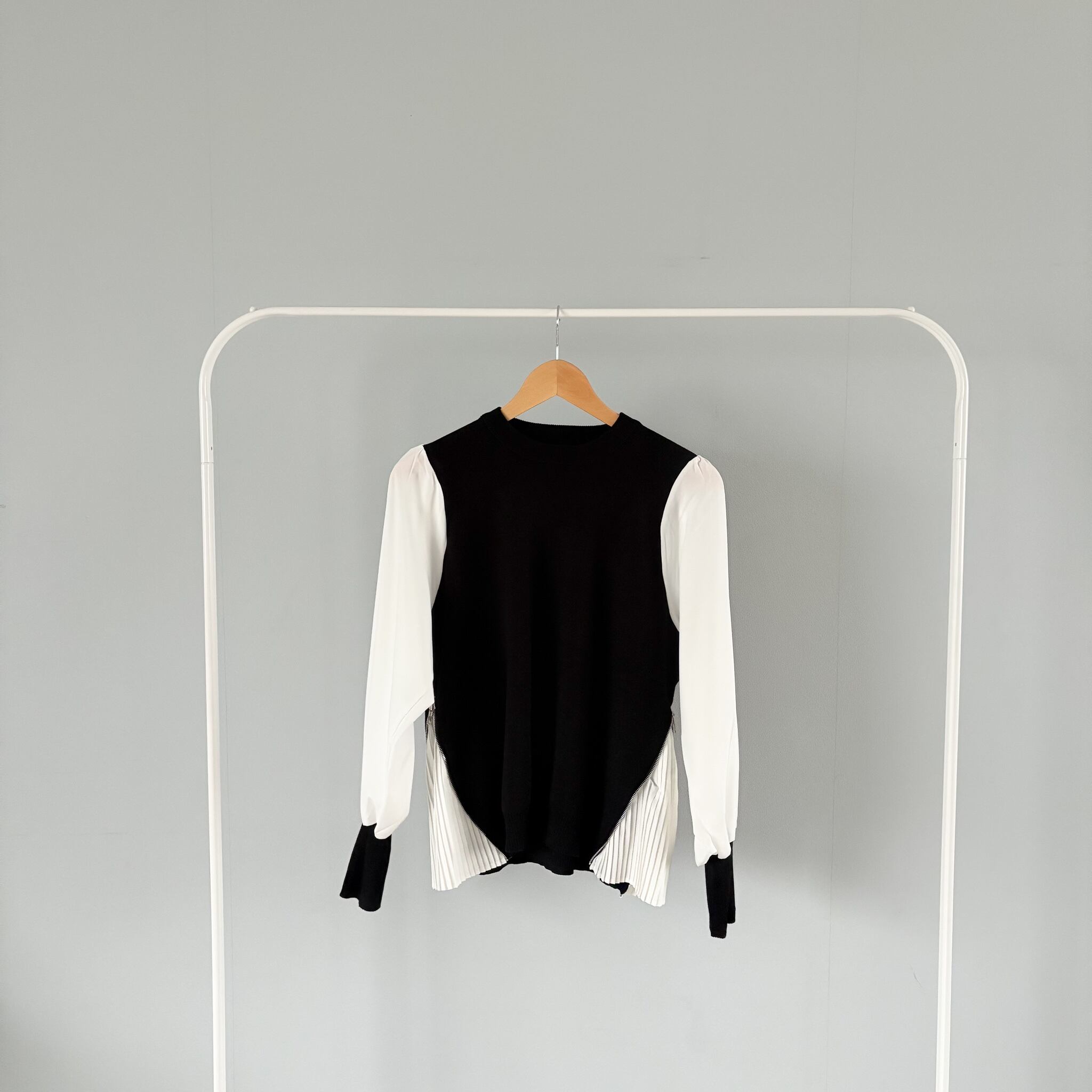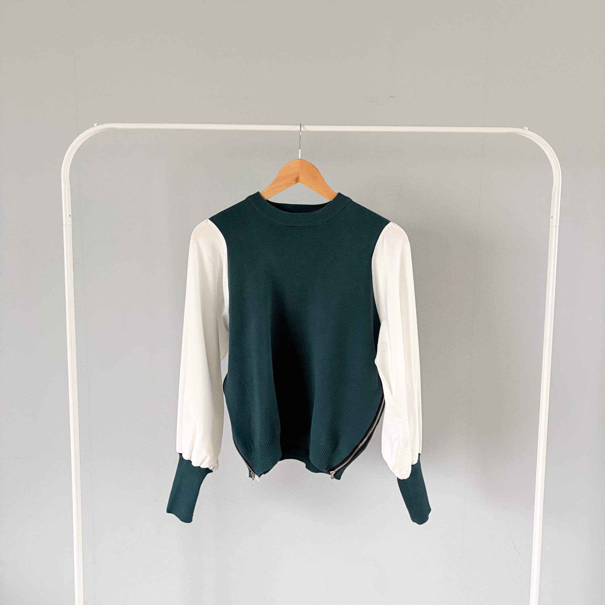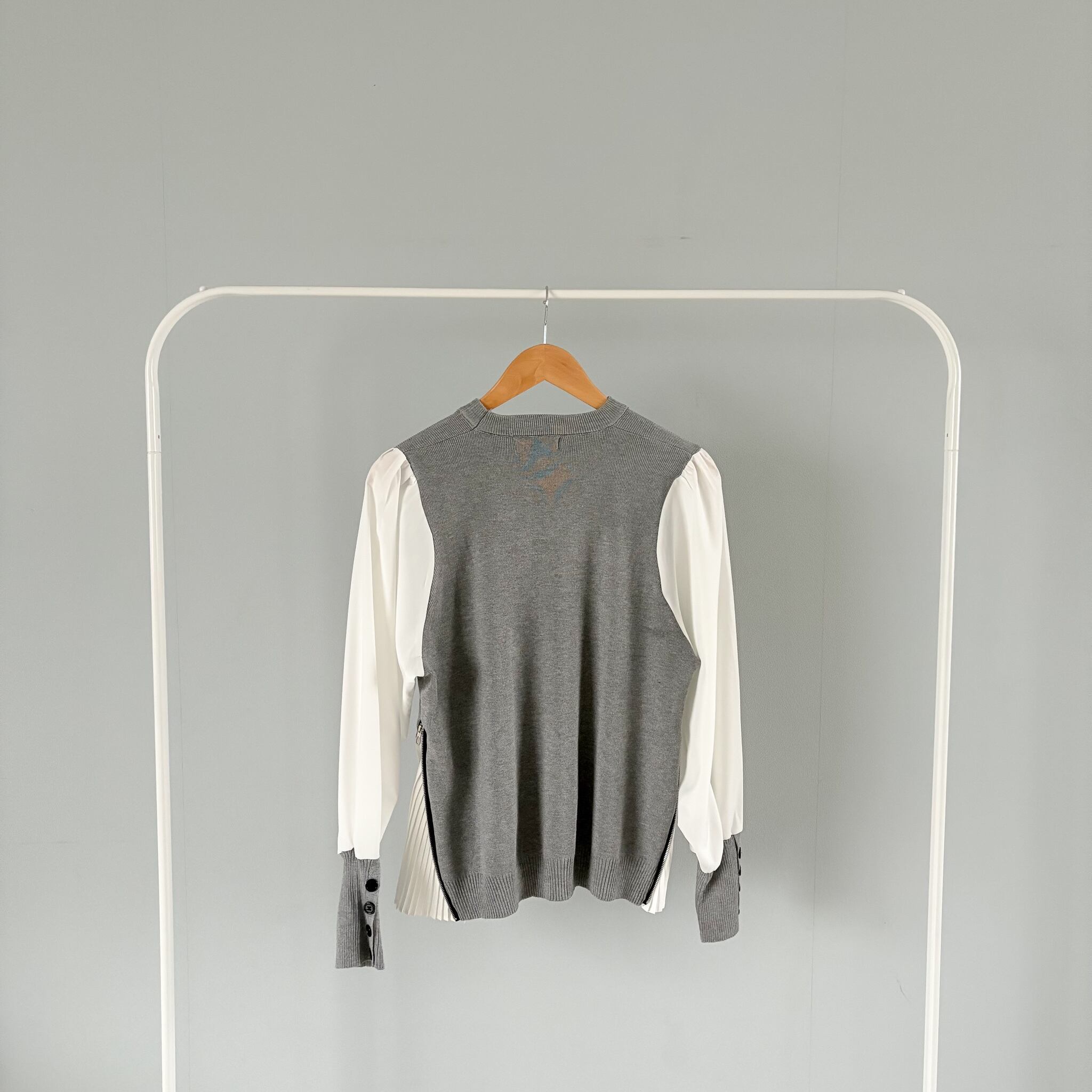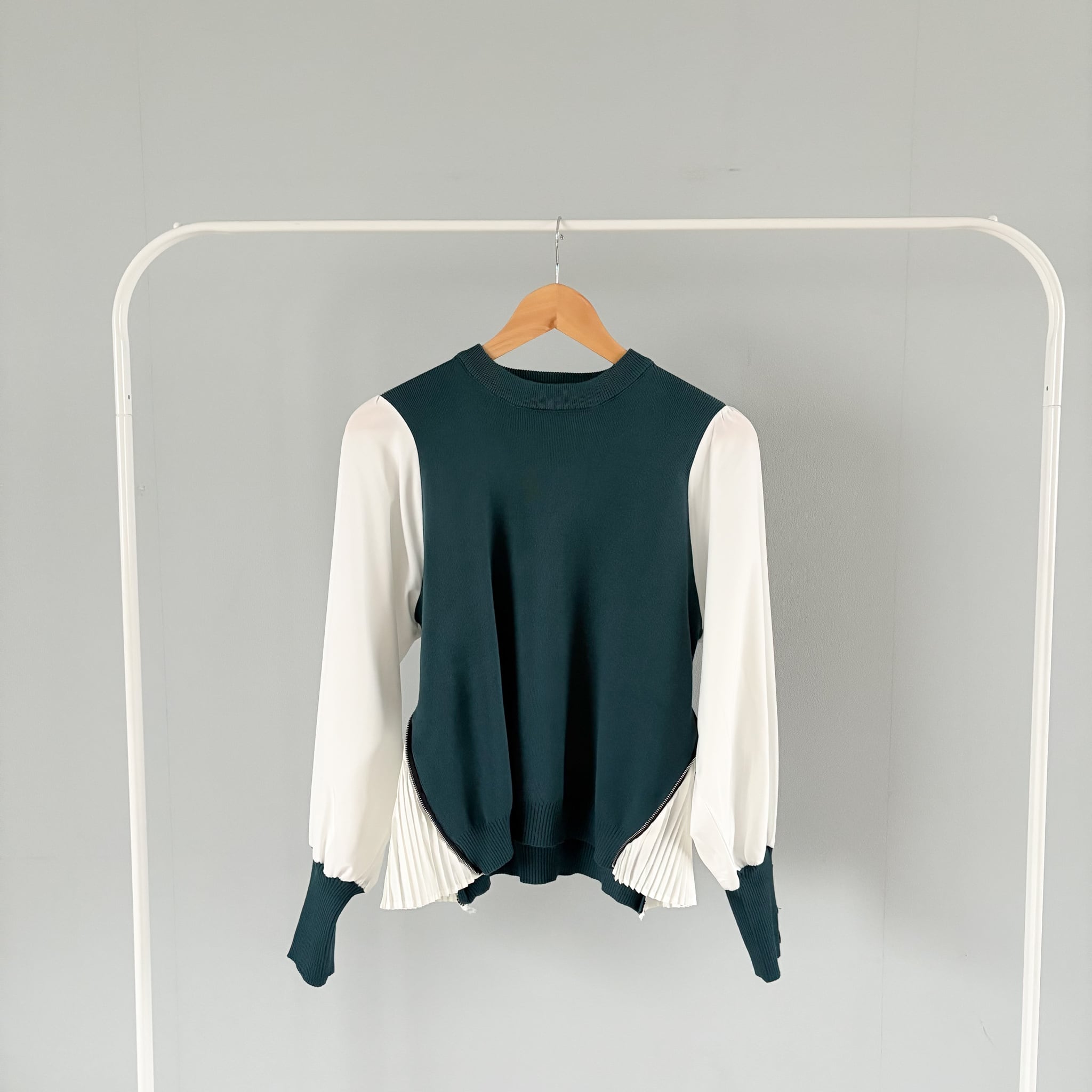 裾サイドのプリーツデザインが上品に揺れる異素材ニット。
