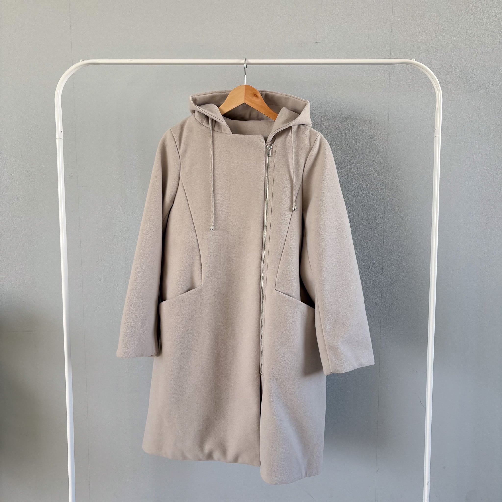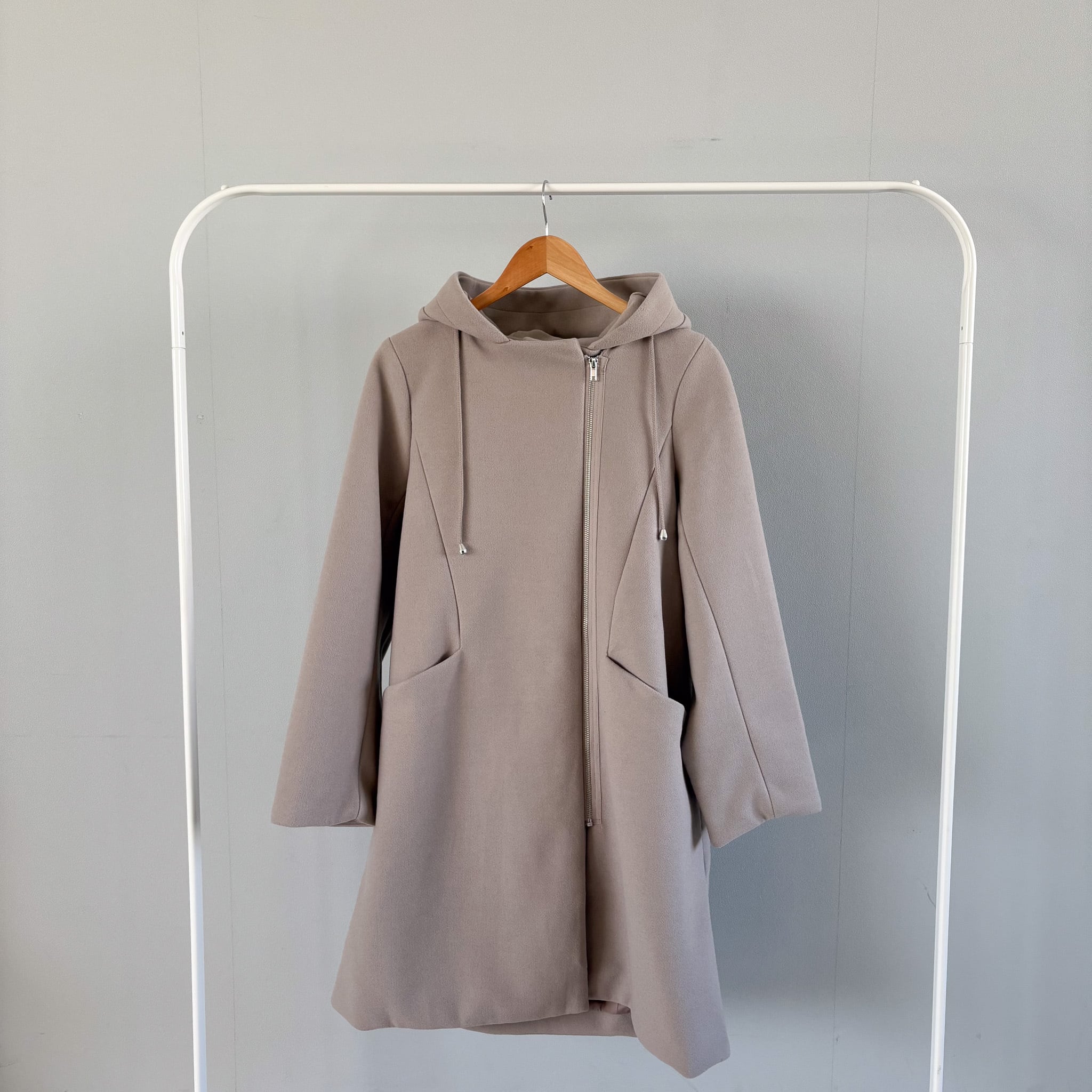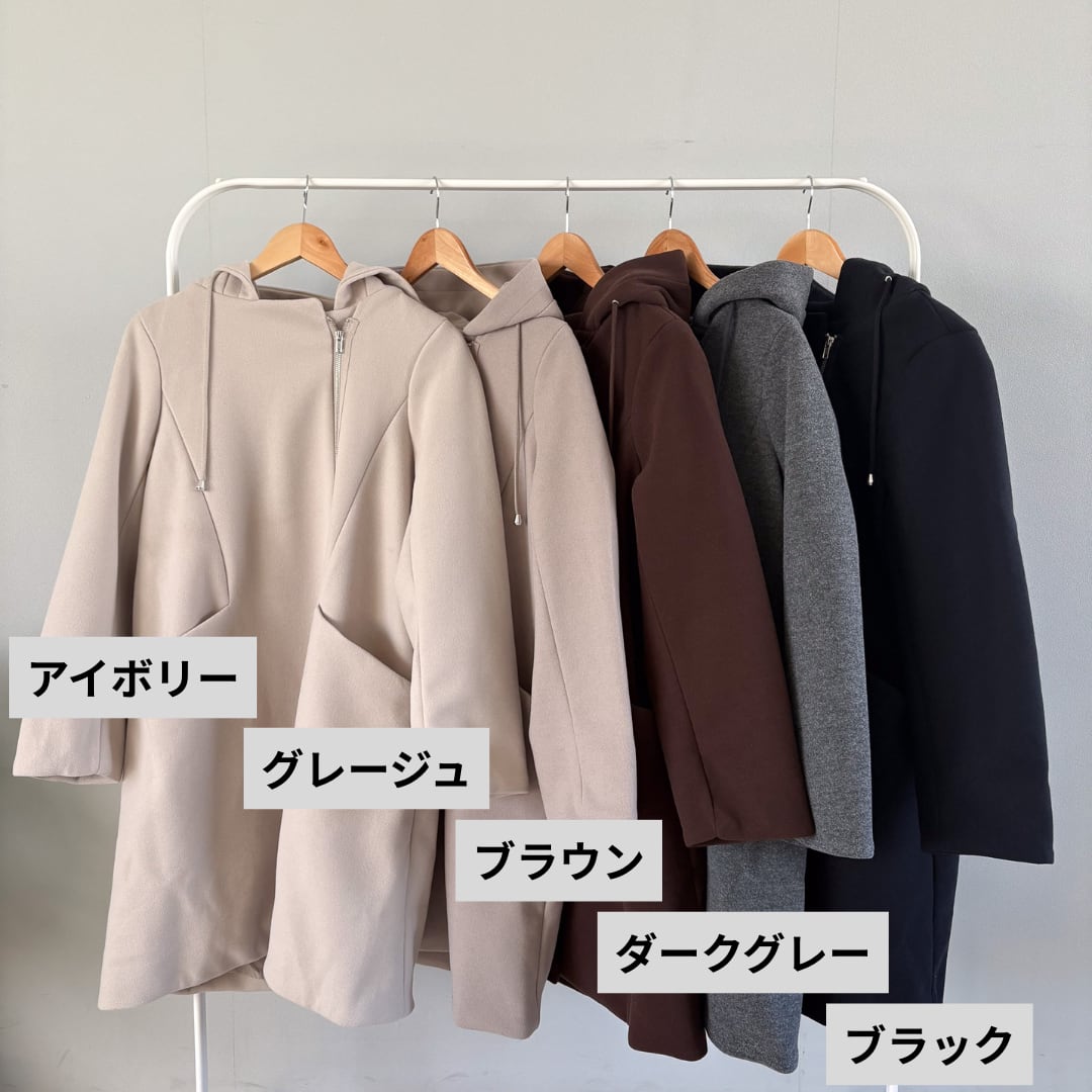 上品さとカジュアルさを兼ね備えた、フード付きジップコート。