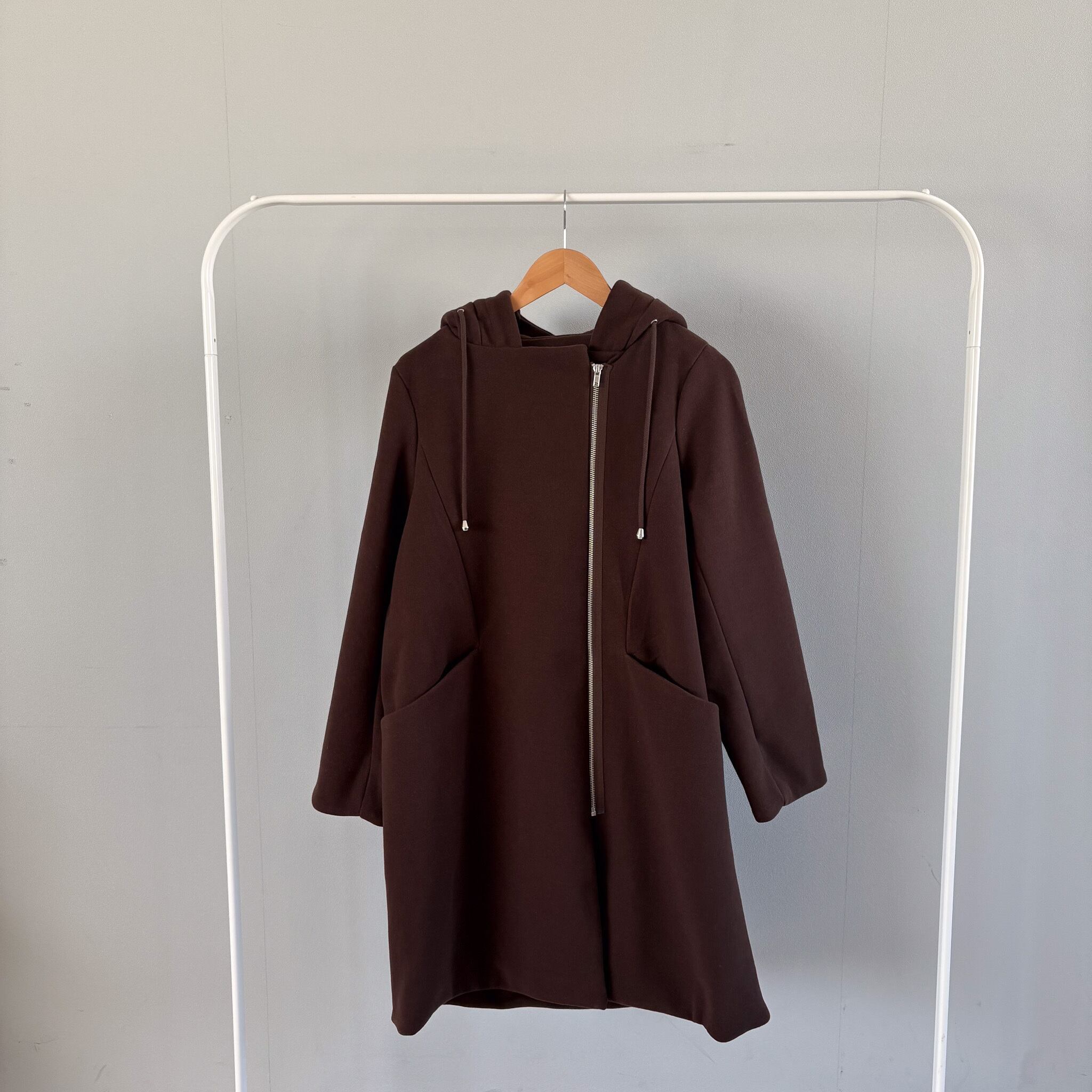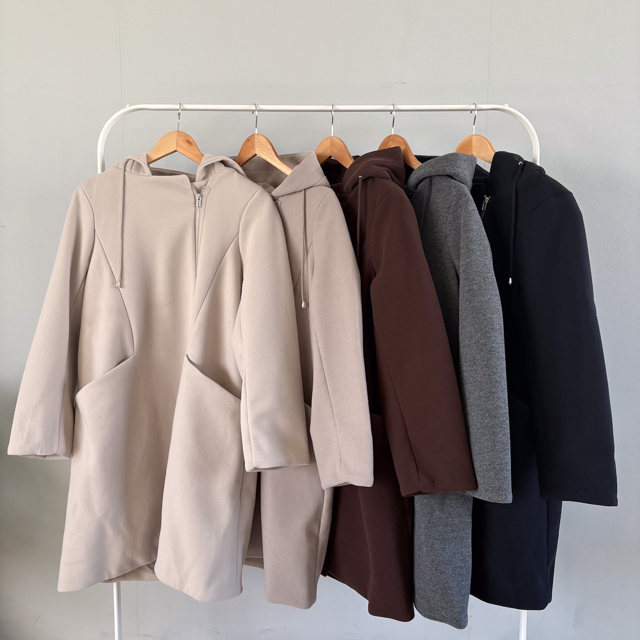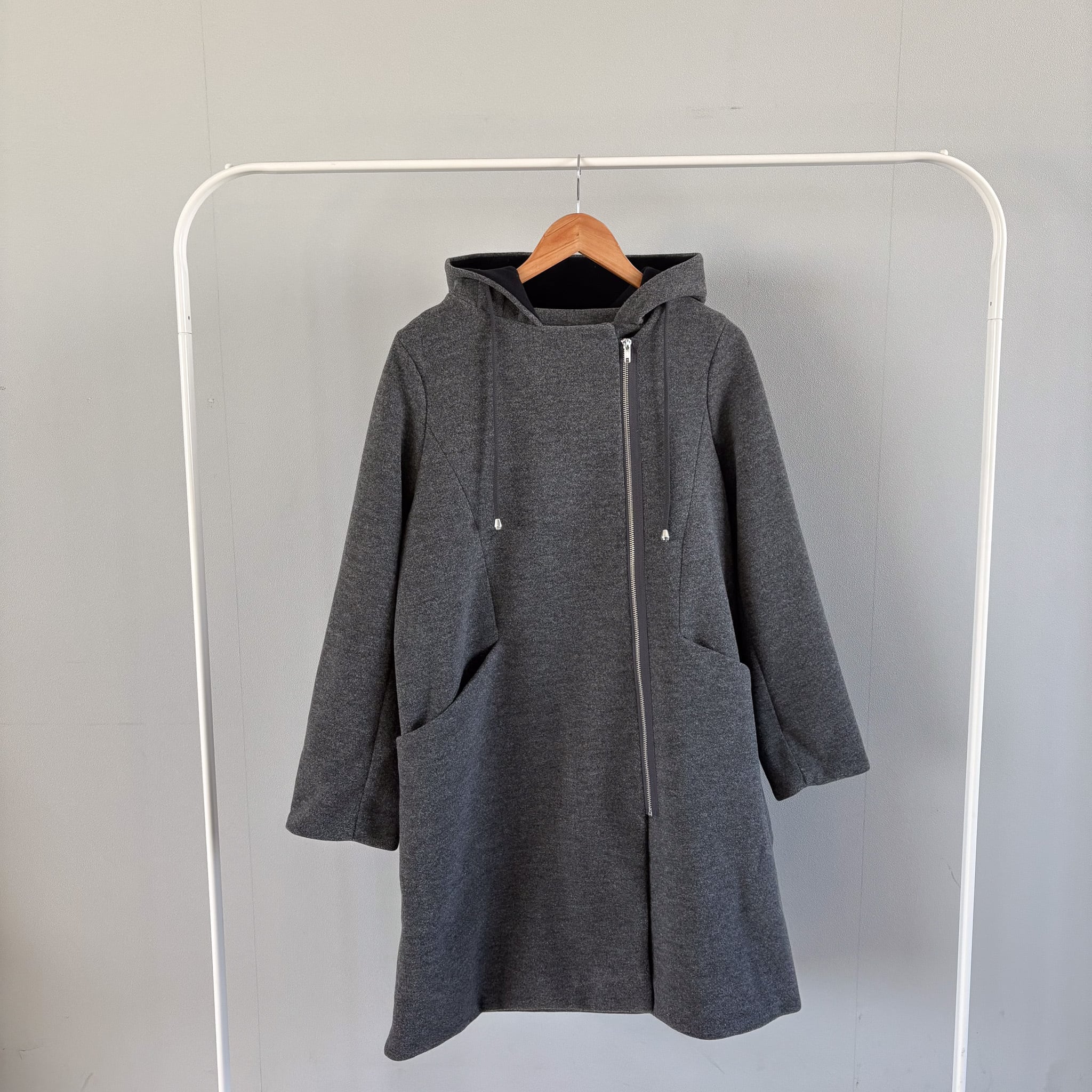 上品さとカジュアルさを兼ね備えた、フード付きジップコート。