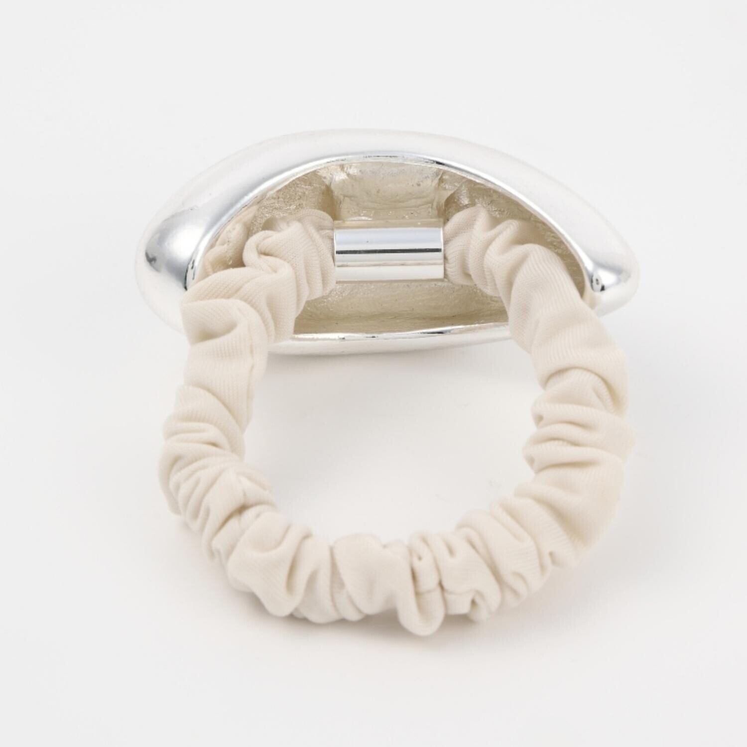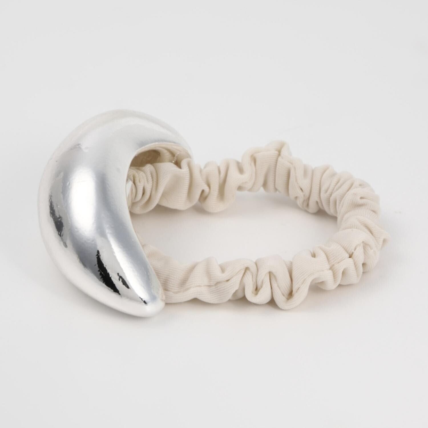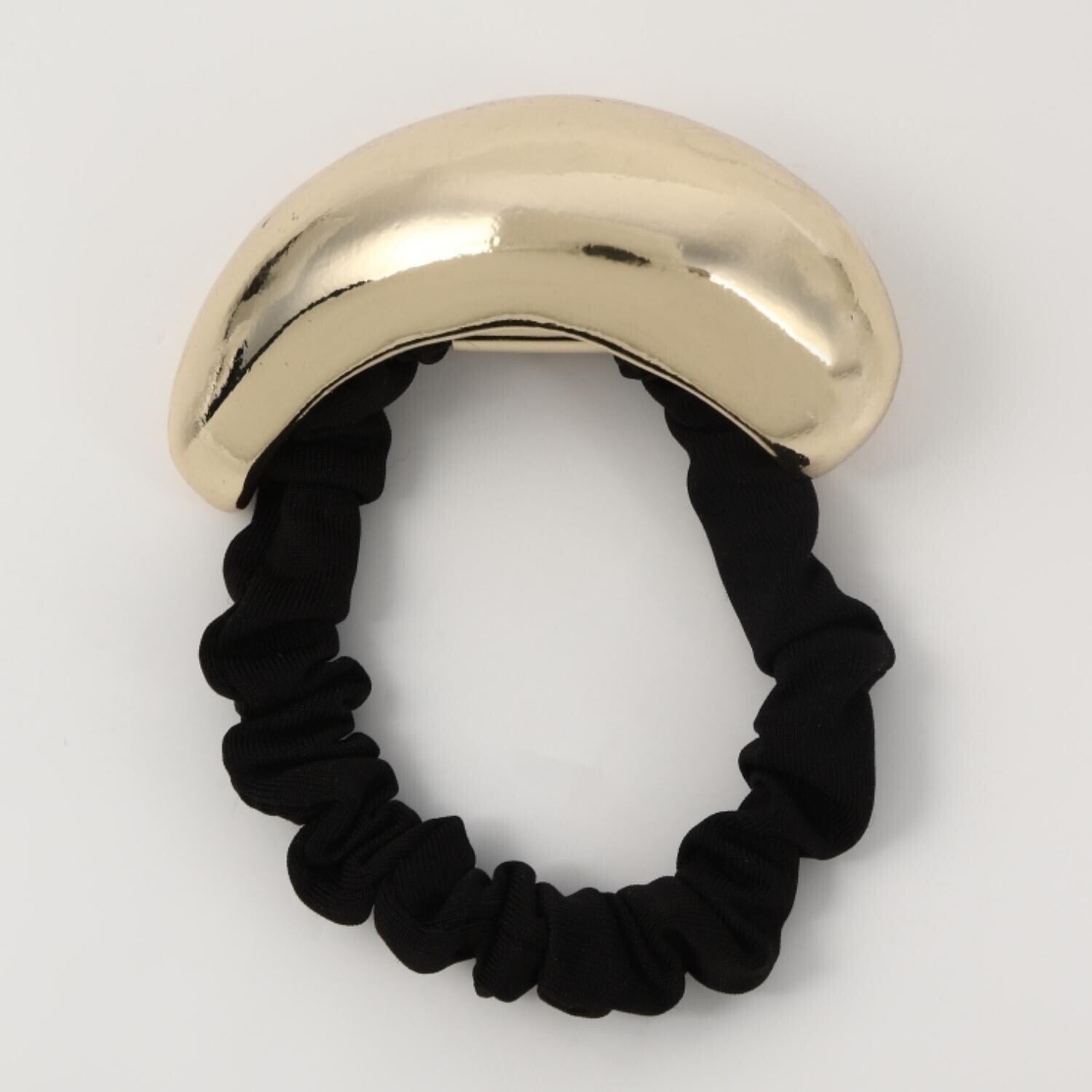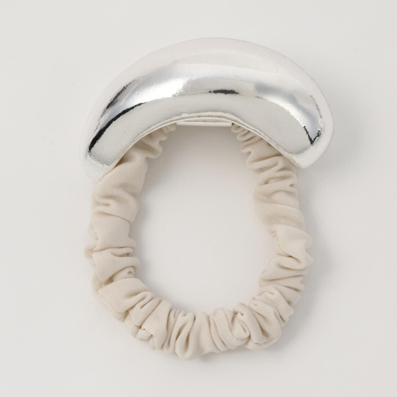 存在感のあるメタルモチーフが目を惹くシュシュ。