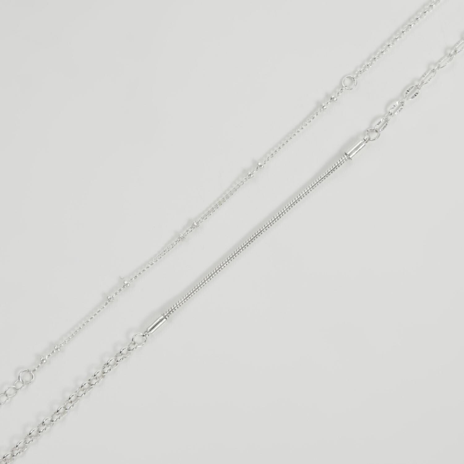 異なる数種類のチェーンを組み合わせた、上品なセットネックレス。